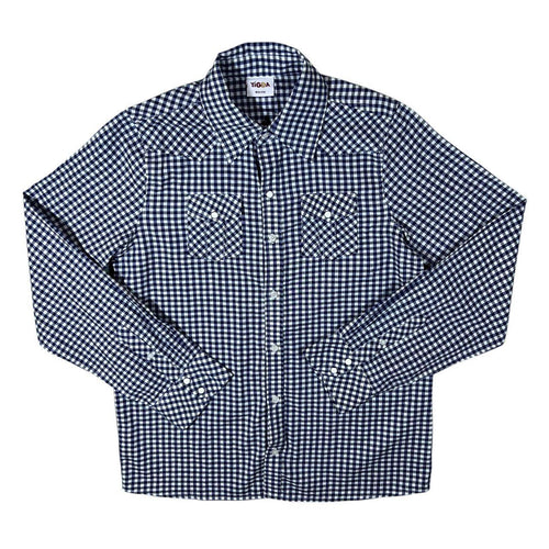 Vintage Yigga Cowboy Western Style Blue White Plaid Check Long Sleeve Cotton Shirt