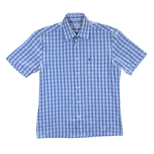 Vintage YVES SAINT LAURENT YSL Classic Plaid Check Pocket Logo Short Sleeve Button-Up Shirt