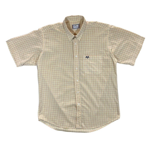 Vintage THOMAS BURBERRY Classic Plaid Check Pocket Logo Short Sleeve Button-Up Shirt