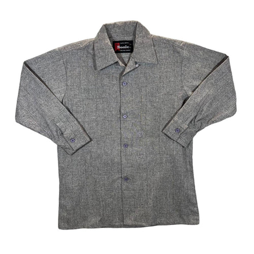 Vintage 90's SONIC ITALIAN FABRIC Grey Check Super Wool Long Sleeve Shirt