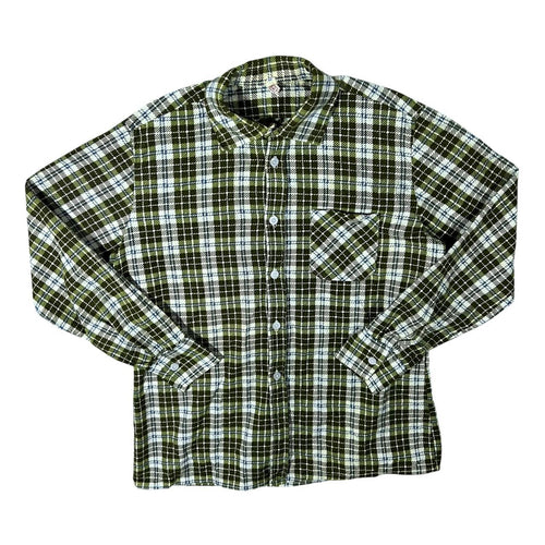 Vintage Absolwent Green Multi Plaid Check Long Sleeve Cotton Flannel Shirt