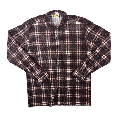 Vintage Triola Brown White Beige Mix Plaid Check Long Sleeve Cotton Flannel Shirt