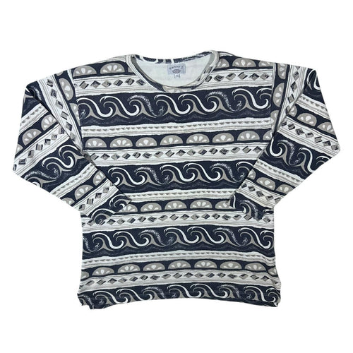 Vintage 90's Kenny S. Crazy Abstract Patterned Cotton Long Sleeve T-Shirt