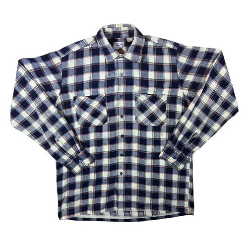 Vintage Friendship Navy White Red Plaid Check Long Sleeve Flannel Shirt