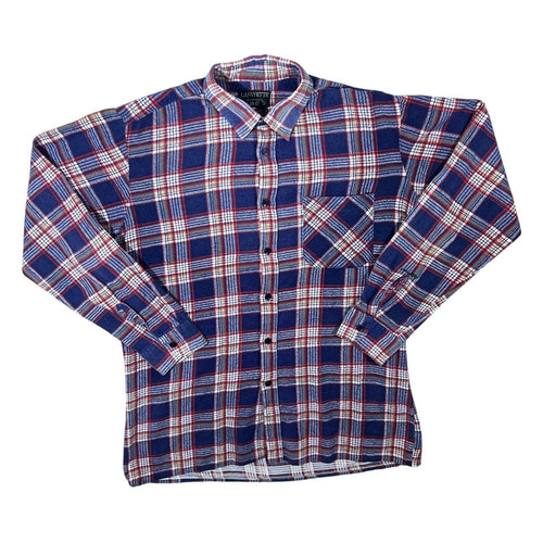Vintage Lafayette Blue Red Plaid Check Long Sleeve Cotton Flannel Shirt