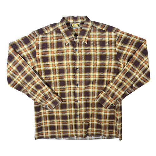 Vintage Johaj Yellow Brown Orange Plaid Check Long Sleeve Cotton Shirt