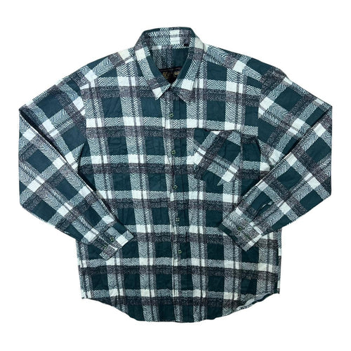 Vintage International Waters Crazy Abstract Patterned Green Long Sleeve Flannel Shirt
