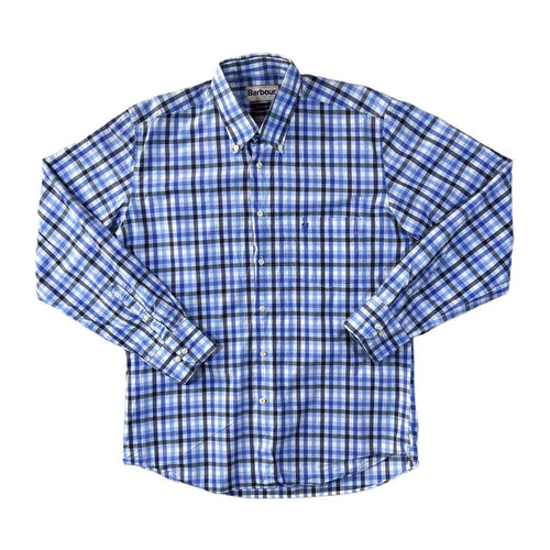 BARBOUR "Regular Fit" Classic Blue Gingham Check Long Slevee Button-Up Cotton Shirt