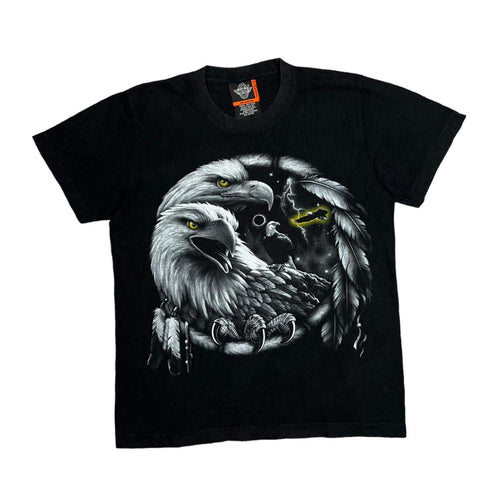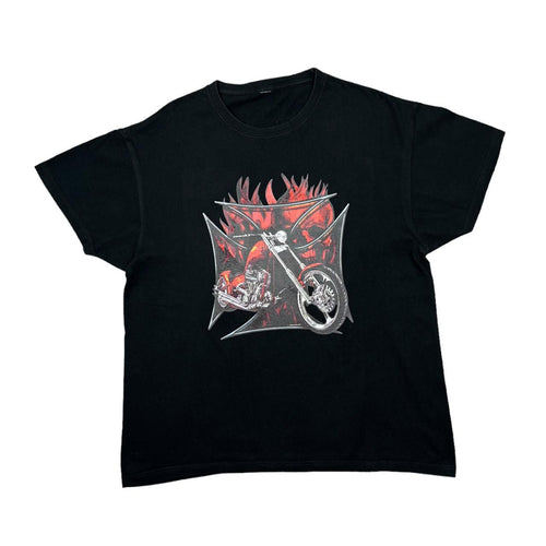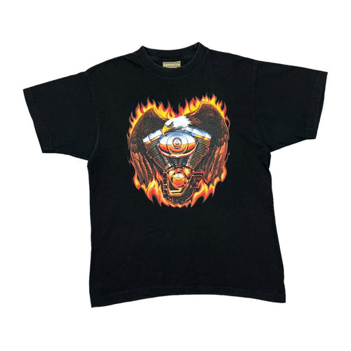 Early 00's SANMARINO Gothic Biker Flaming Eagle Engine Graphic T-Shirt