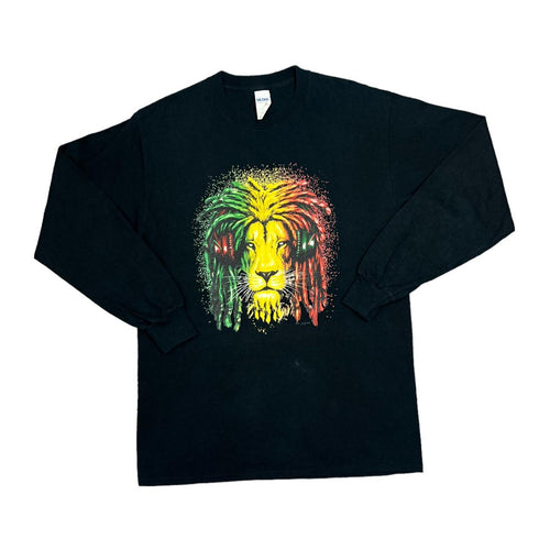 GILDAN Rasta Reggae Lion Animal Graphic Long Sleeve T-Shirt