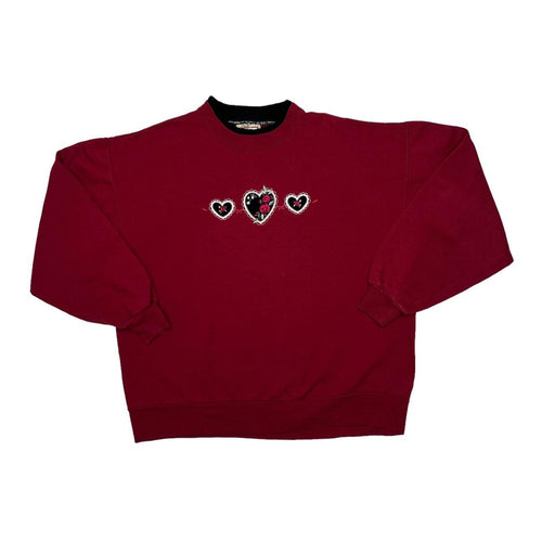 Vintage 90’s TOP STITCH By MORNING SUN Embroidered Floral Heart Double Collar Sweatshirt