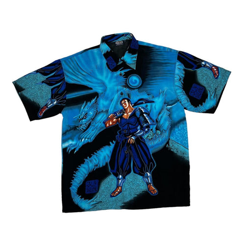 Early 00’s GIORGIO Gothic Tattoo Style Dragon Patterned All-Over Print Polyester Shirt