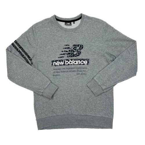 NEW BALANCE Cheetah Camo Print Logo Spellout Graphic Crewneck Sweatshirt
