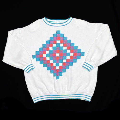 JASON MAXWELL Geometric Abstract Shape Striped Trim Crewneck Sweatshirt