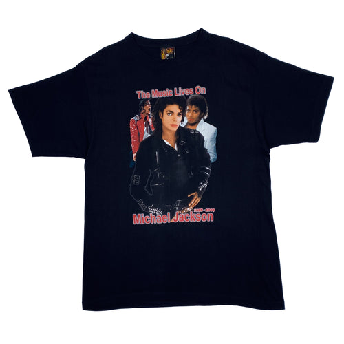 MICHAEL JACKSON “The Music Lives On” King Of Pop Tribute Music Spellout Graphic T-Shirt