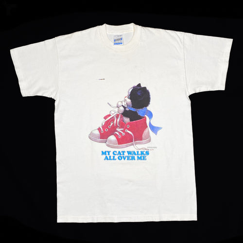Screen Stars MY CAT WALKS ALL OVER ME Kitten Pet Animal Novelty Graphic T-Shirt