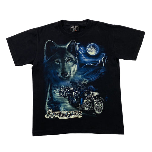 Rock Chang “SURVIVORS” Biker Wolf Nature Spellout Graphic T-Shirt