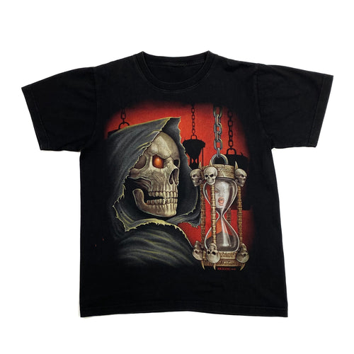 HERO BUFF Gothic Fantasy Grim Reaper Hourglass Skull Graphic T-Shirt