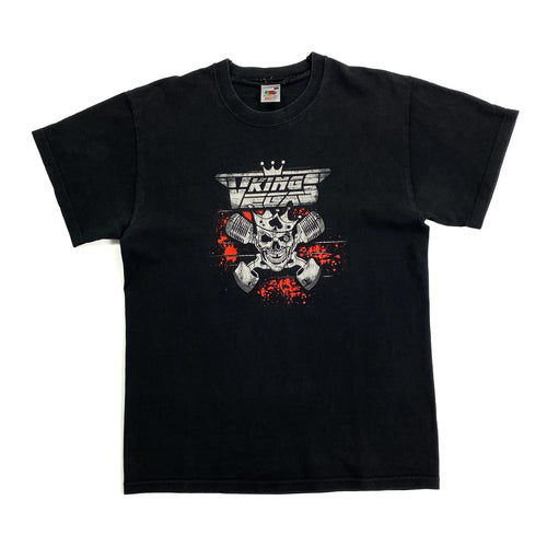 VIKINGS VEGAS Gothic Biker Skull Spellout Graphic T-Shirt