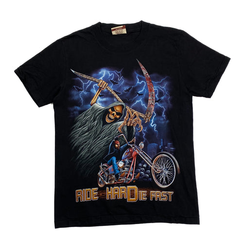 Rock Eagle RIDE HARD DIE FAST Gothic Biker Spellout Graphic T-Shirt