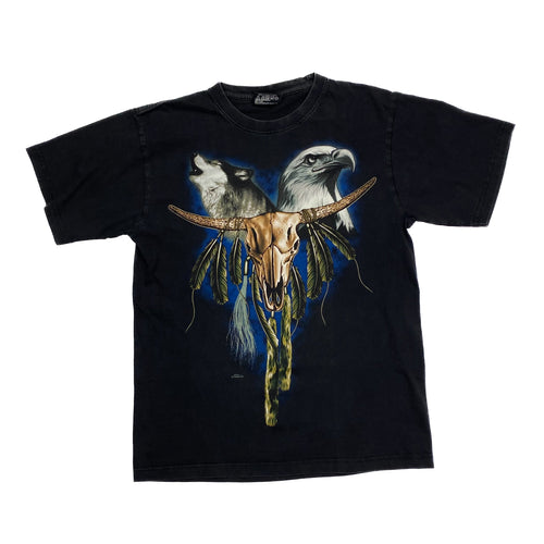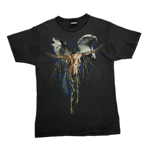 FAN SHIRT Gothic Native American Cow Skull Wolf Eagle Animal Graphic T-Shirt