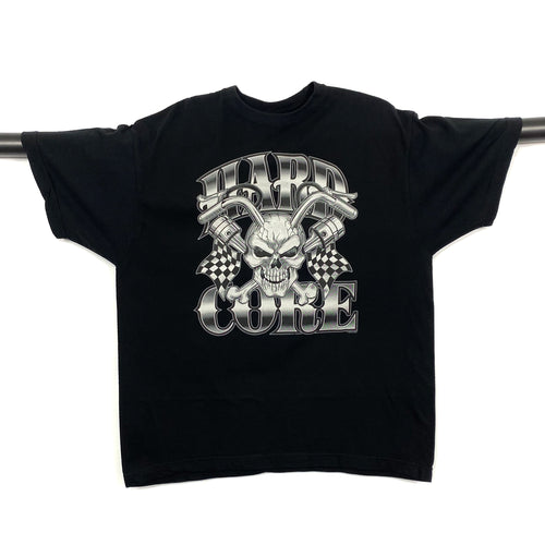 HARDCORE Biker Gothic Racing Flag Skull Graphic T-Shirt
