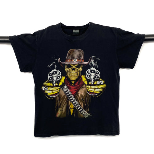 Vintage Gothic Cowboy Western Skeleton Skull Graphic T-Shirt