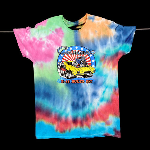 CAMARO (1975) “Z-28 Rules Ok!” Hot Rod Muscle Car Cartoon Tie Dye T-Shirt