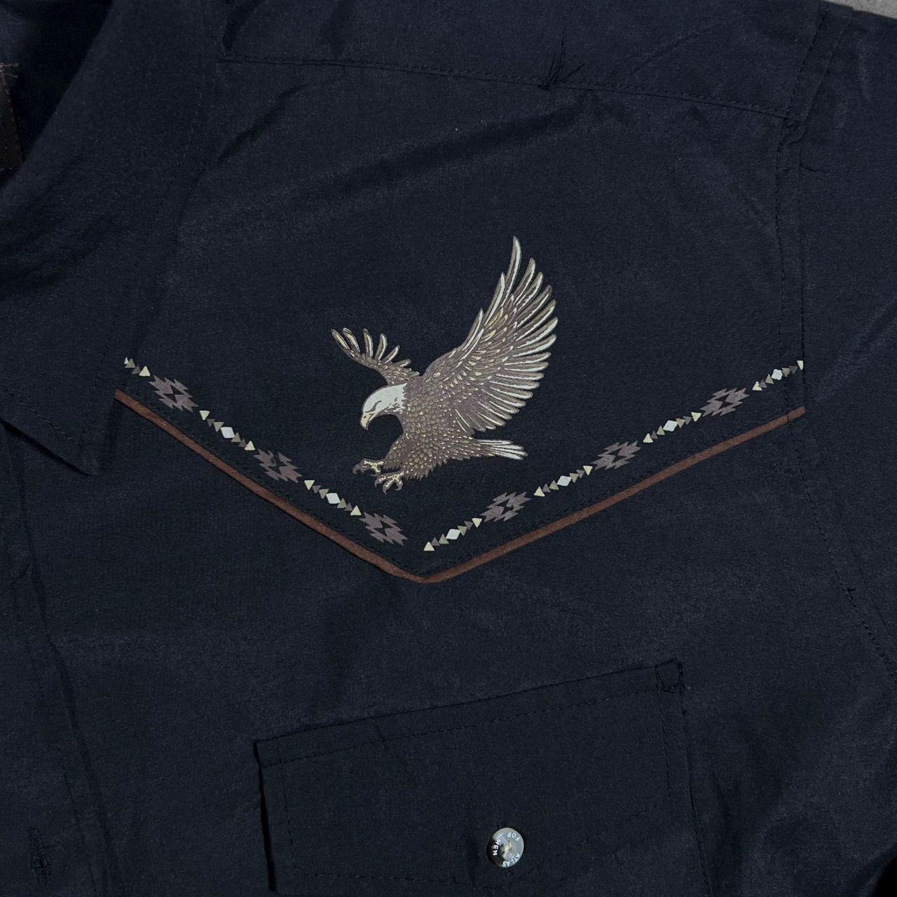 Atlas For Men Cowboy Western Eagle Graphic Panel Black Long Sleeve Cotton Shirt