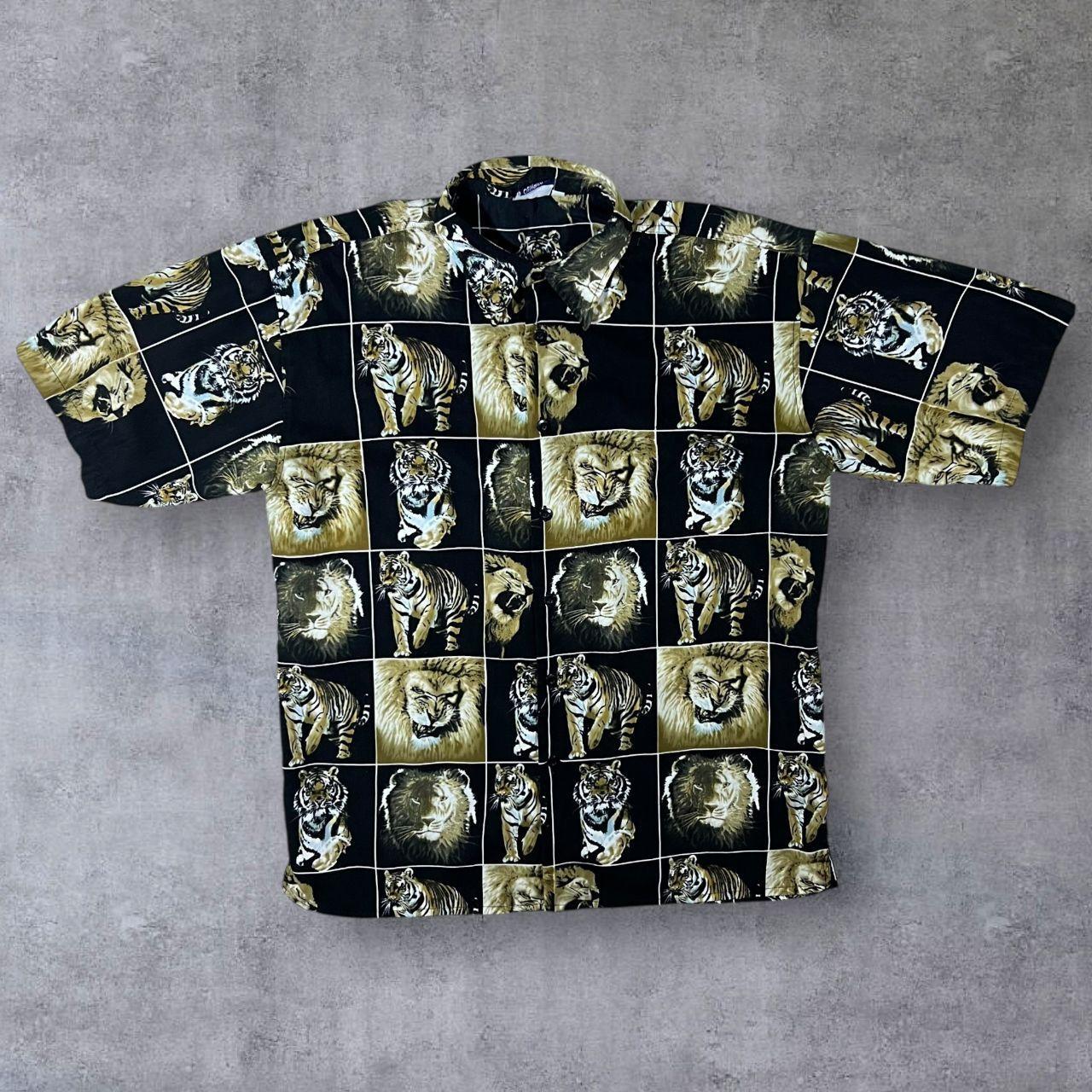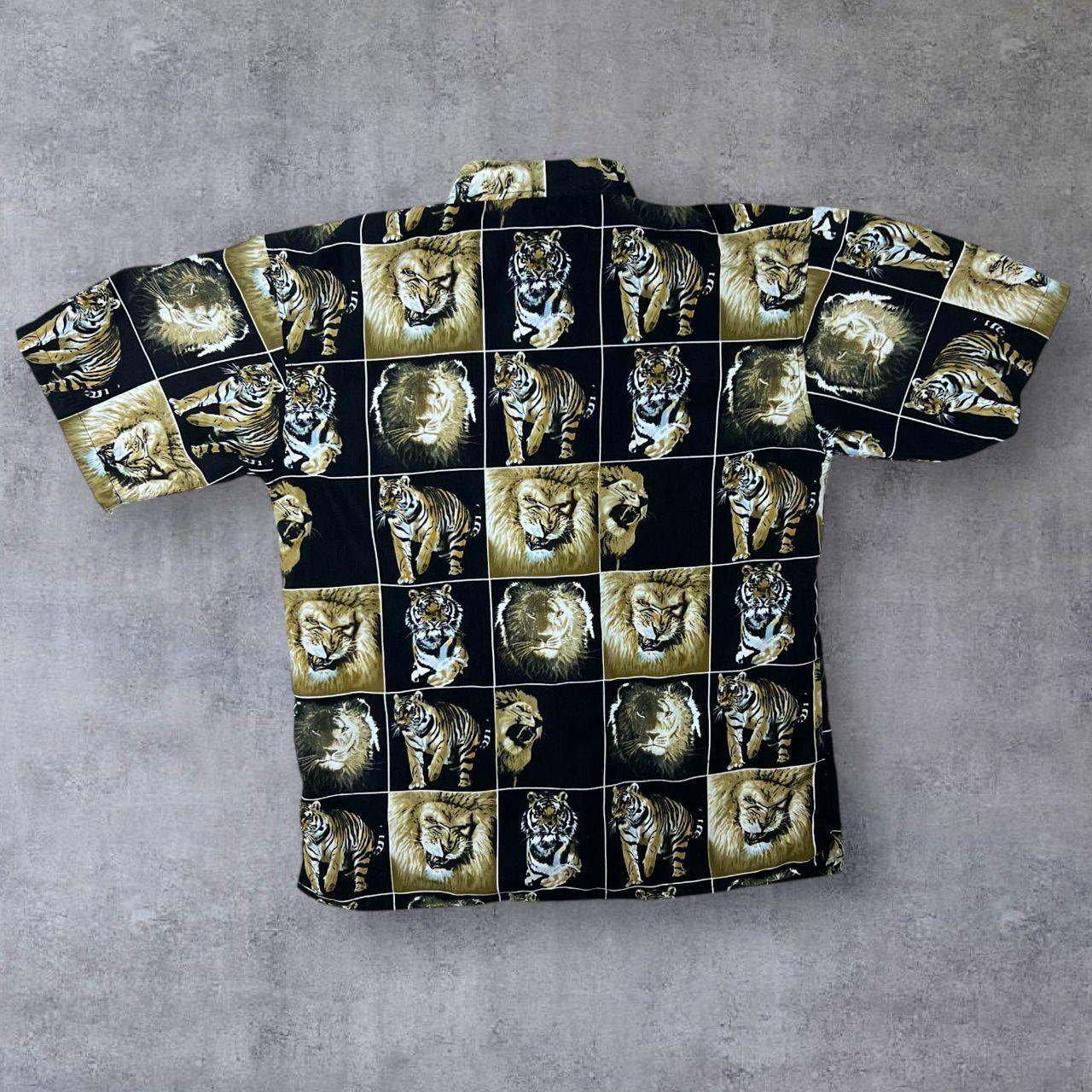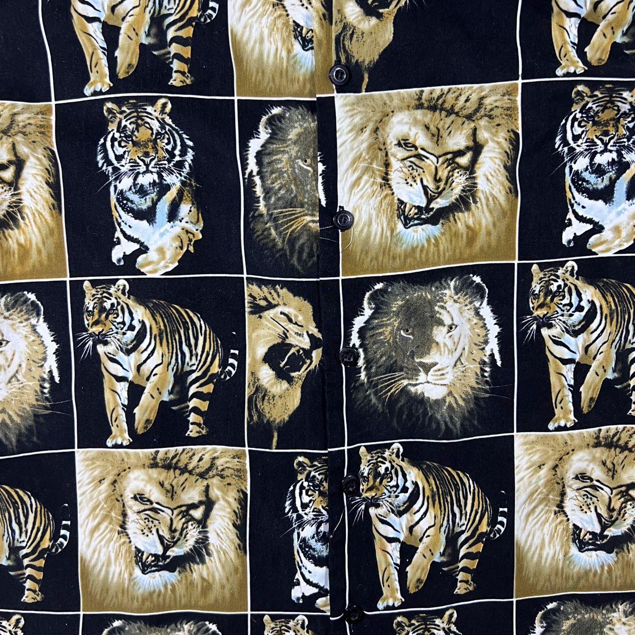 Early 00's 725 Originals Lion Tiger Animal Graphic Black Beige Polyester Shirt