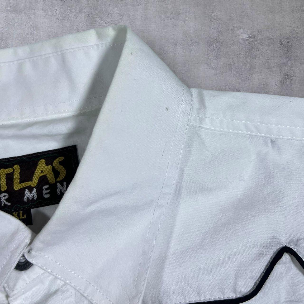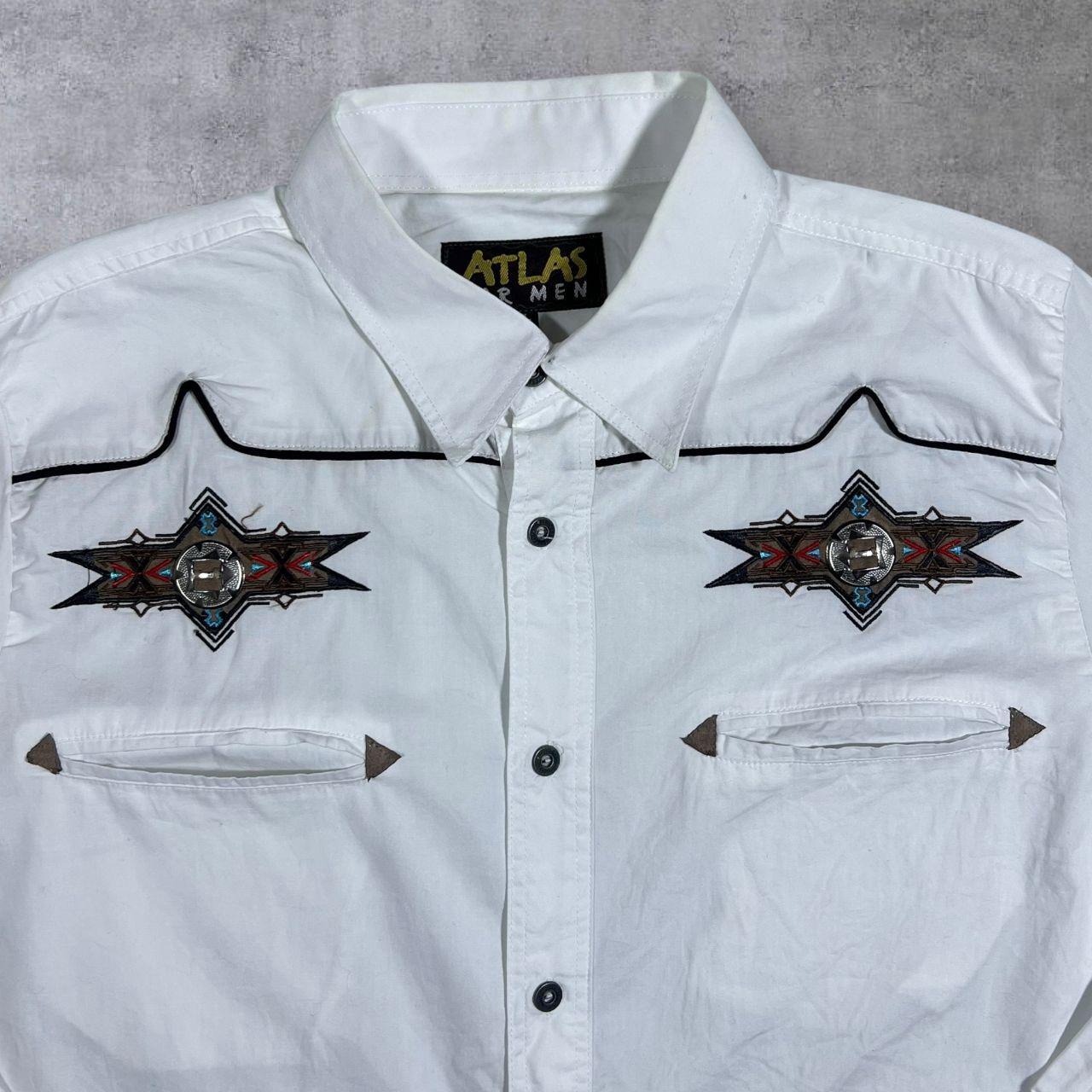 Early 00's Atlas For Men Cowboy Western Embroidered Native White Long Sleeve Cotton Shirt