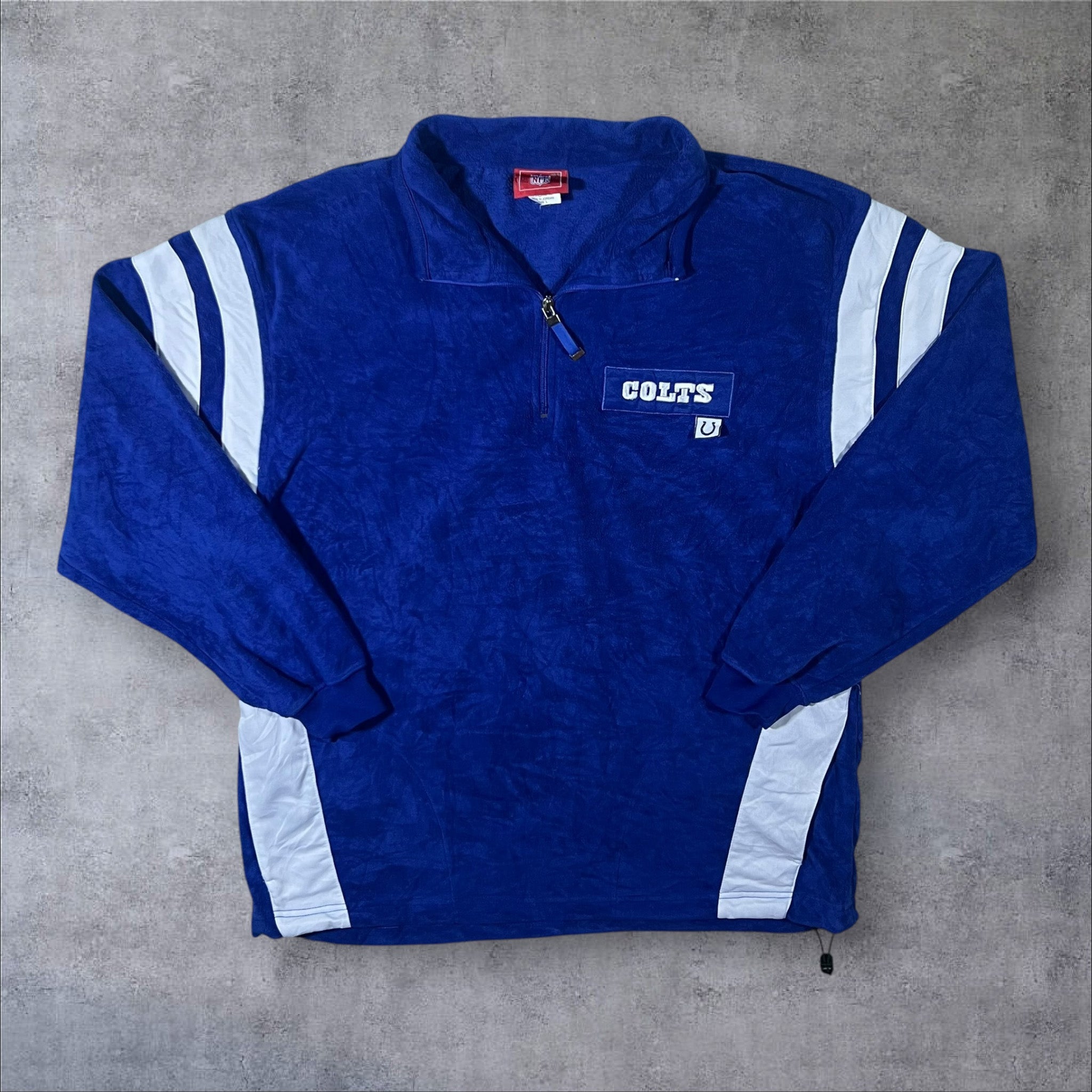 NFL Indianapolis Colts Football Embroidered Patch Logo Blue 1/4 Zip Fleece Sweatshirt