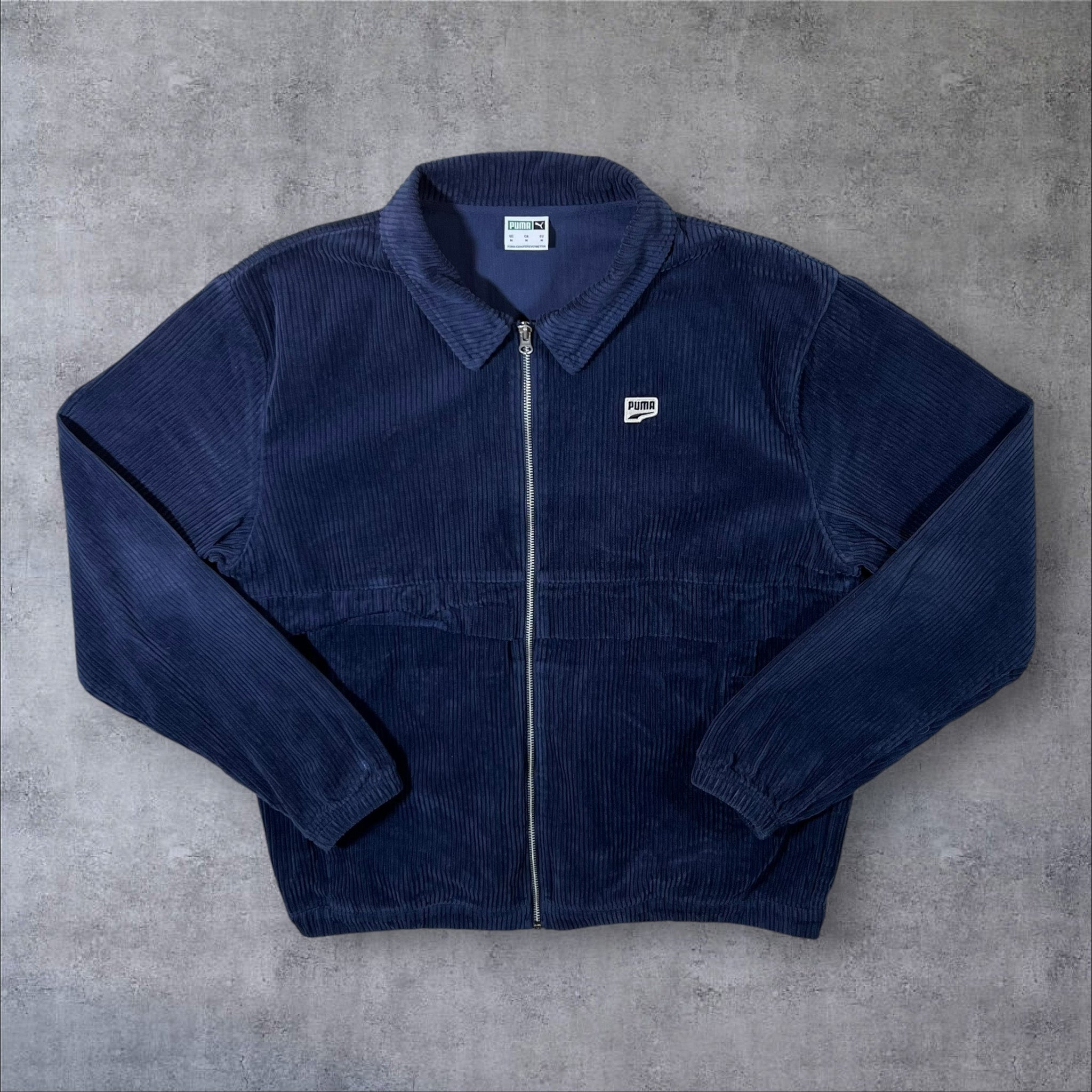 Puma Classic Mini Logo Navy Blue Corduroy Cord Zip Bomber Jacket