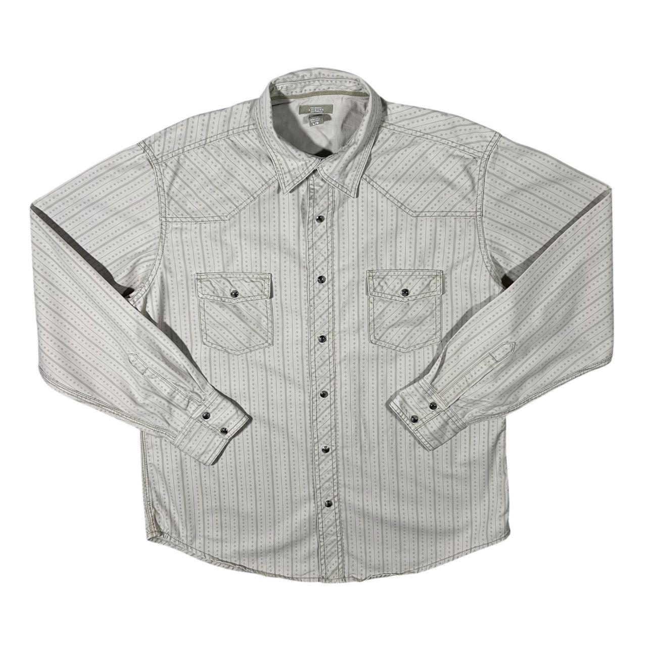 Vintage Arizona Jeans Co. Beige Patterned Striped Western Cotton Popper Long Sleeve Shirt