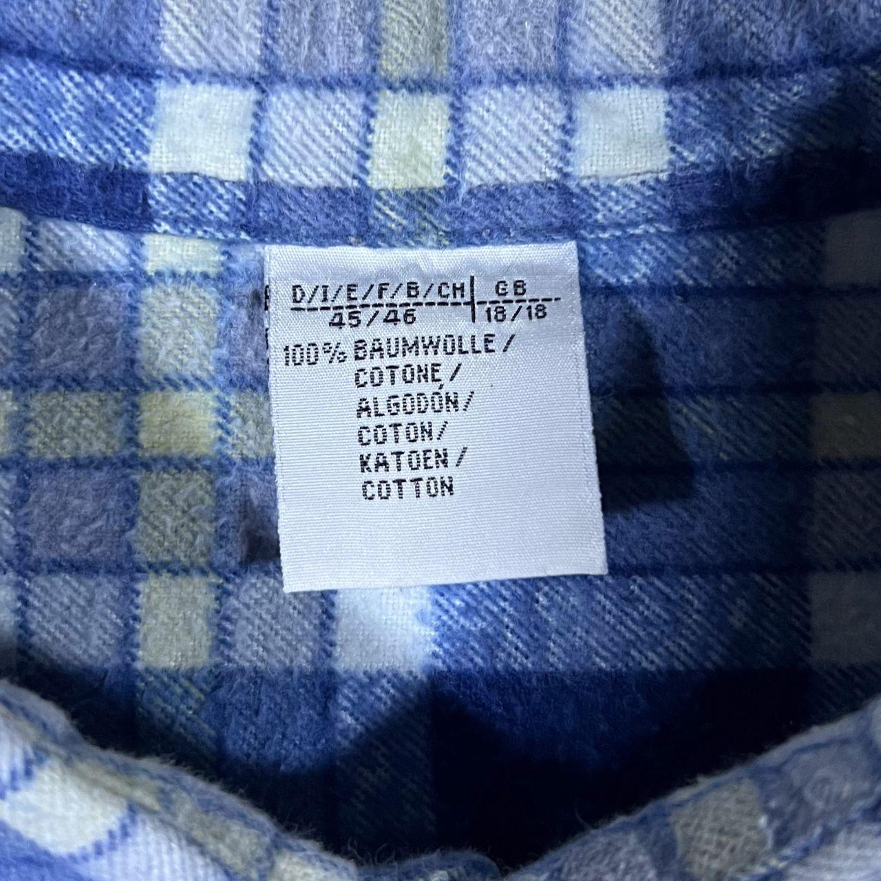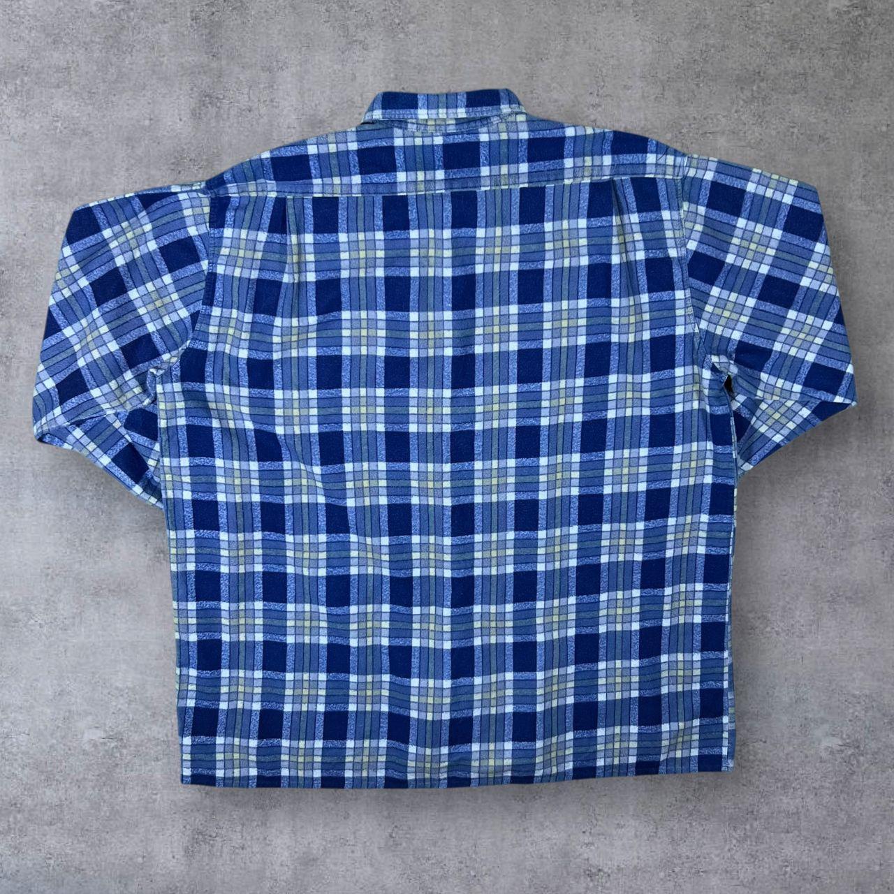 Vintage Blue Yellow White Plaid Check Long Sleeve Cotton Flannel Shirt
