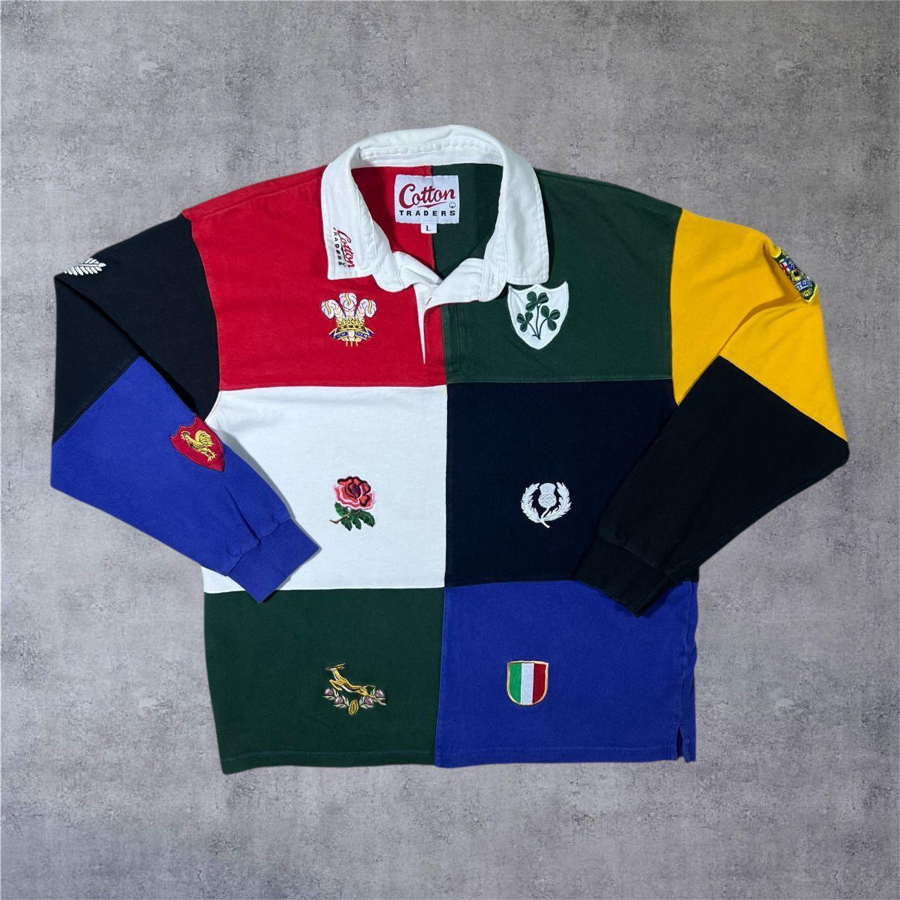 Vintage Cotton Traders Rugby Nations Embroidered Colour Block Long Sleeve Polo Shirt