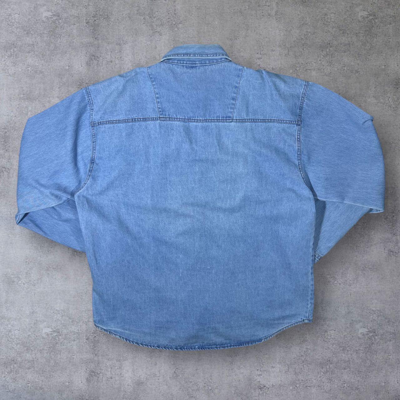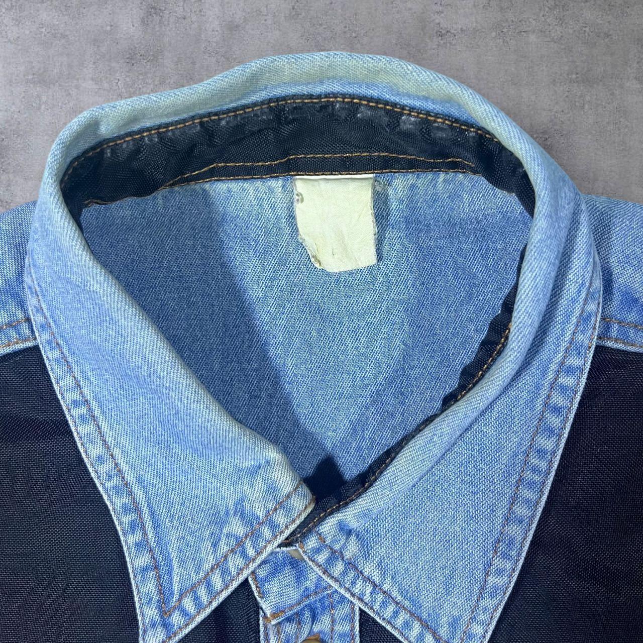 Size: Label faded but fits XL/XXL (See measurements)Colour: Blue Denim/BlackDetail: 100% cotton material.Condition: Light general wear as expected.