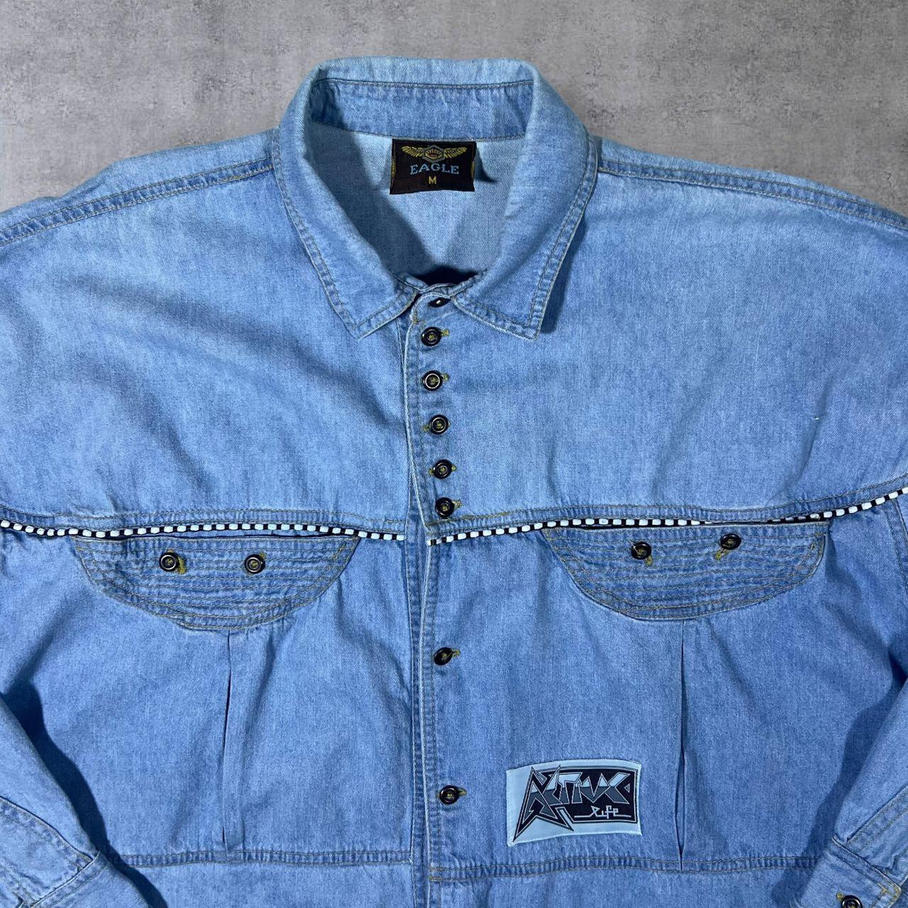 Vintage Eagle Active Life Cowboy Western Blue Denim Cotton Long Sleeve Shirt