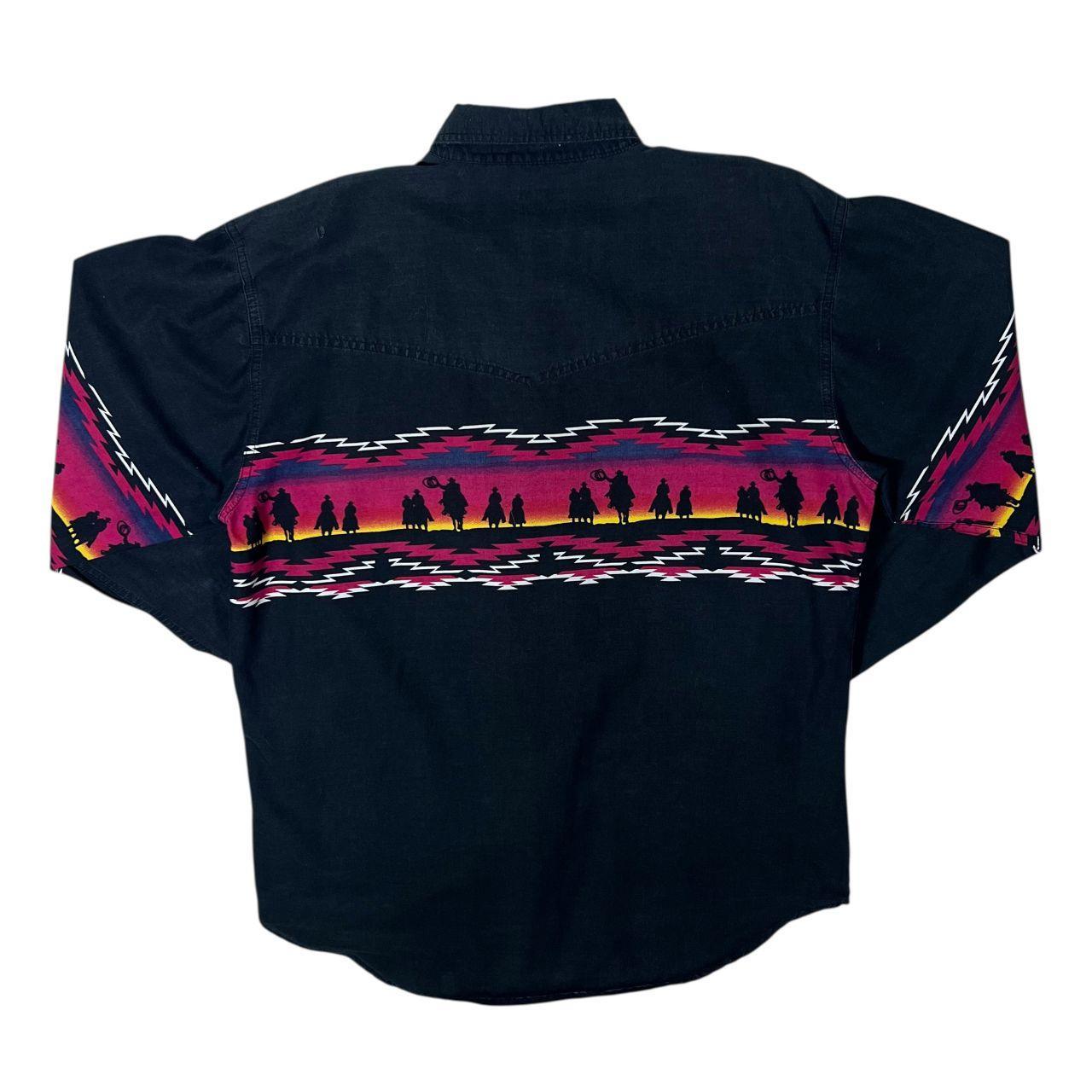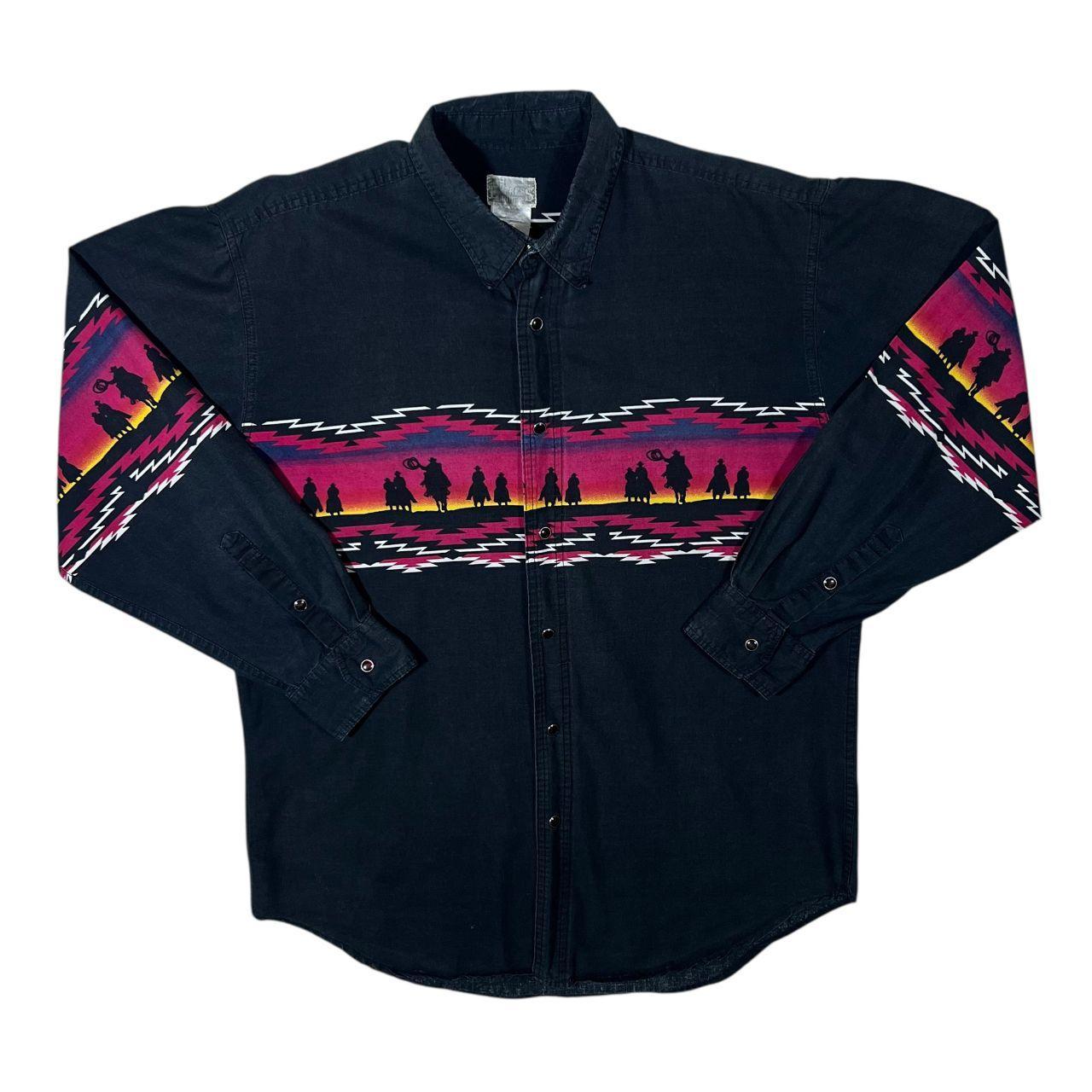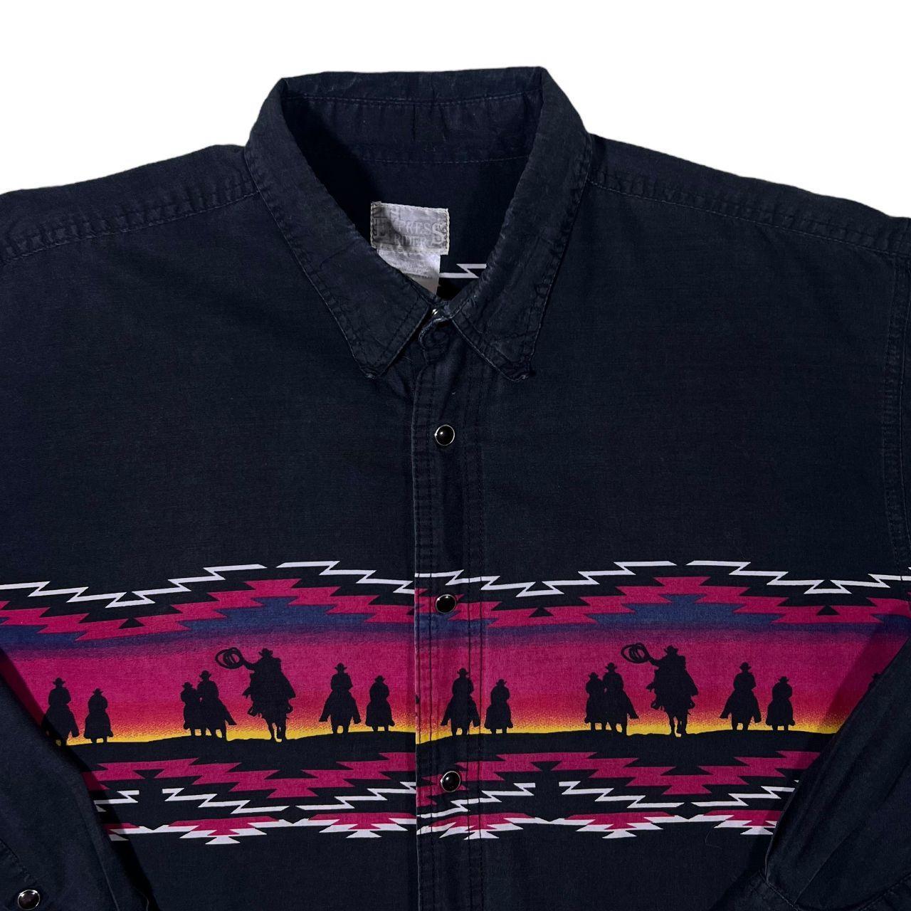 Vintage Express Rider Cowboy Western Patterned Black Long Sleeve Button-Up Cotton Shirt