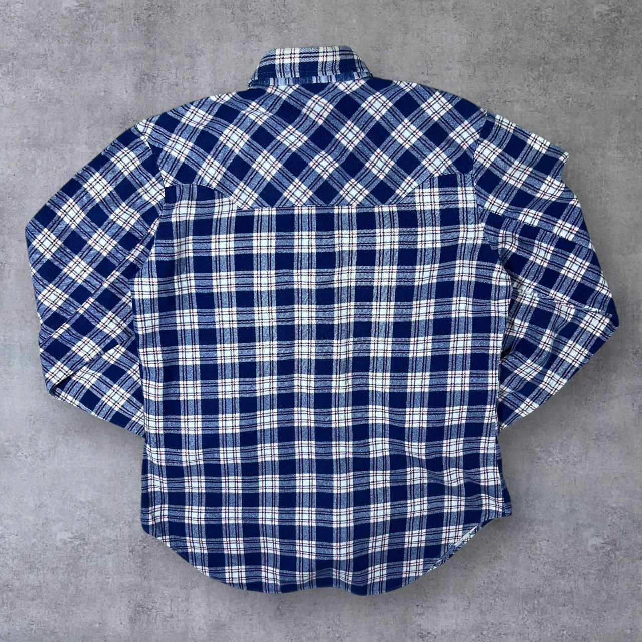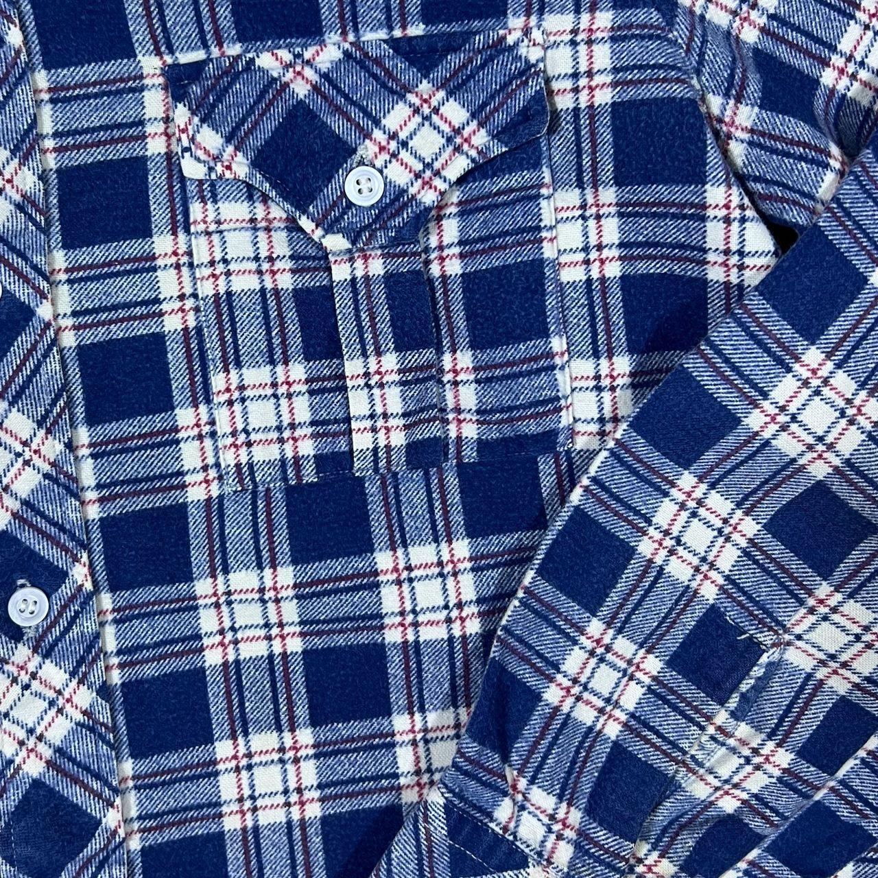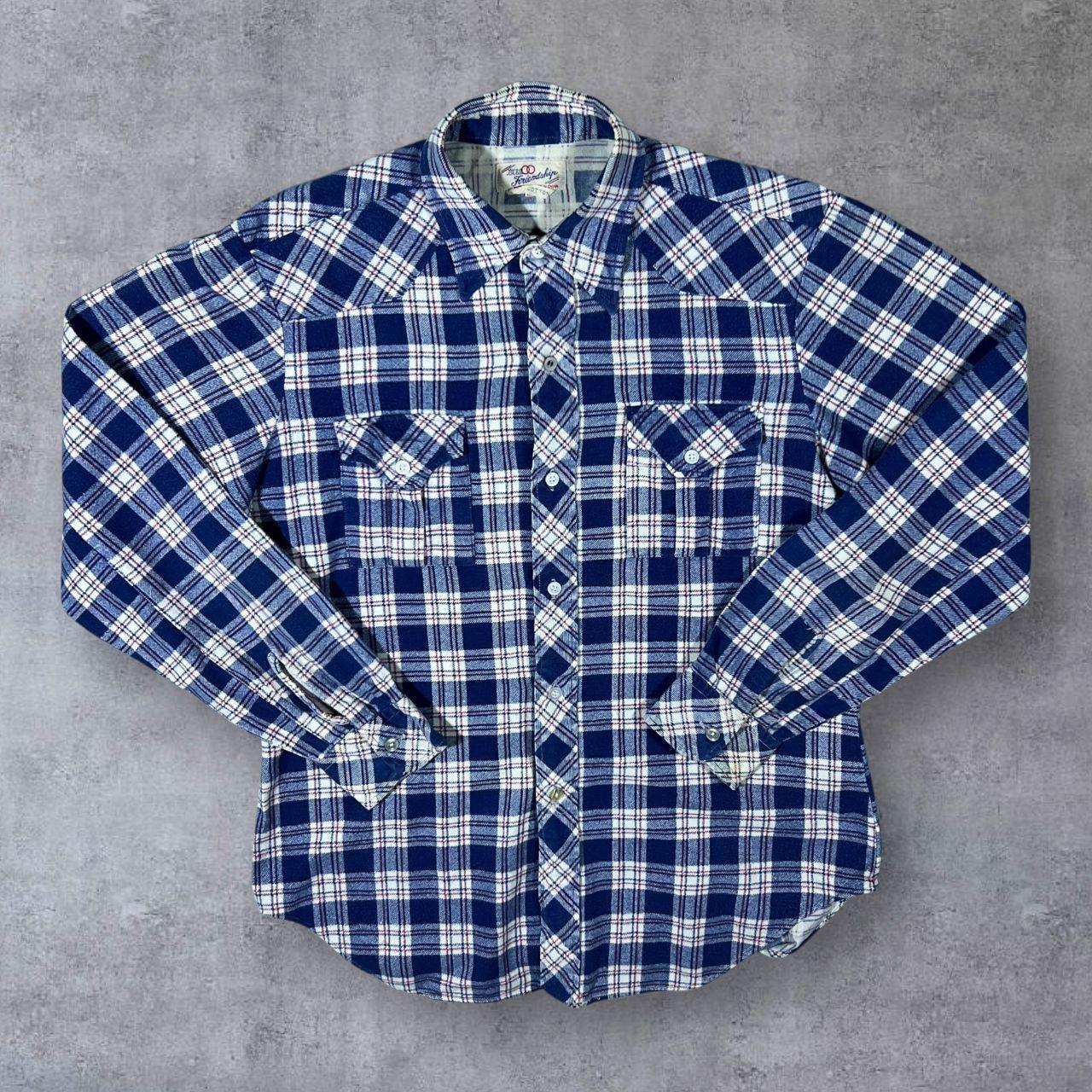 Vintage Friendship Blue Red White Plaid Check Long Sleeve Cotton Flannel Shirt