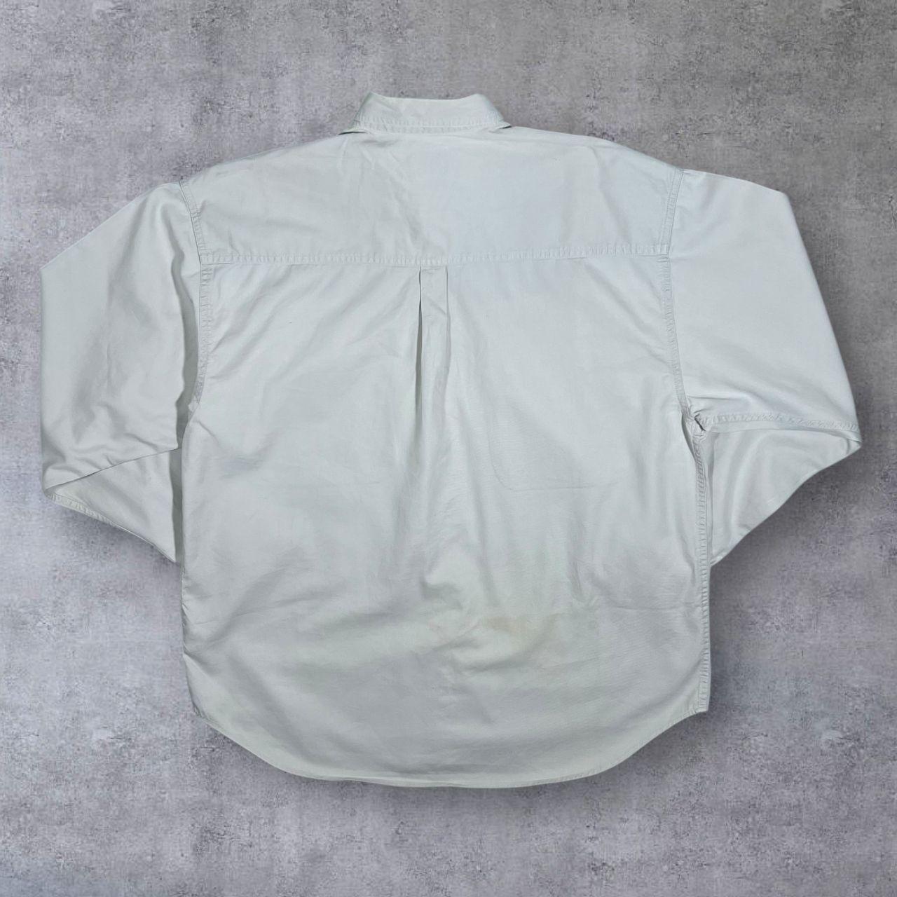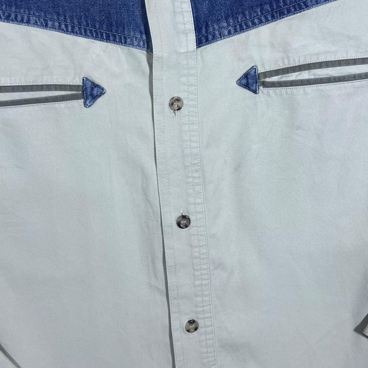 Vintage John Baner Cowboy Western Embroidered Cream Blue Cotton Long Sleeve Shirt