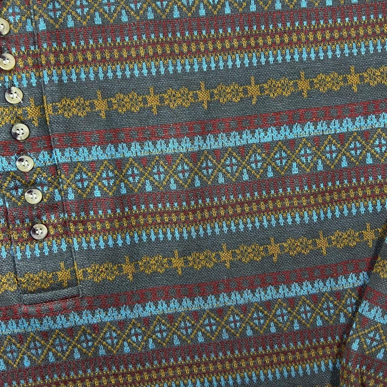 Vintage M.P. Company Crazy Abstract Patterned Polyester Acrylic Long Sleeve Polo Shirt