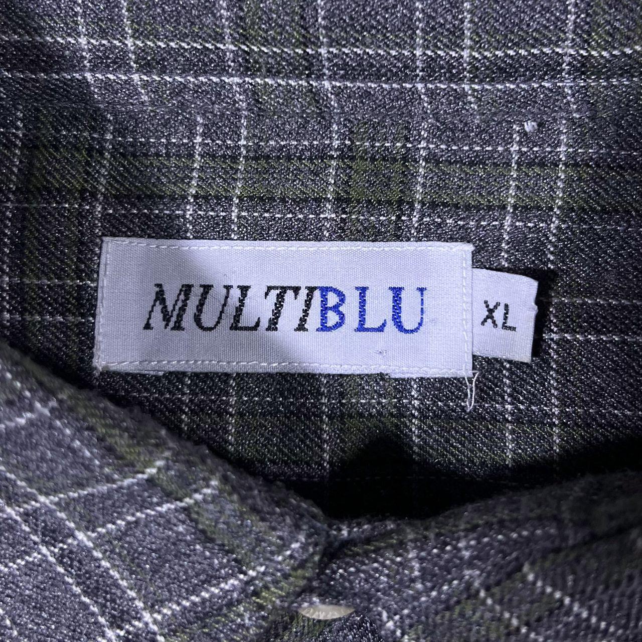 Vintage Multiblu Grey Green Plaid Check Long Sleeve Flannel Shirt