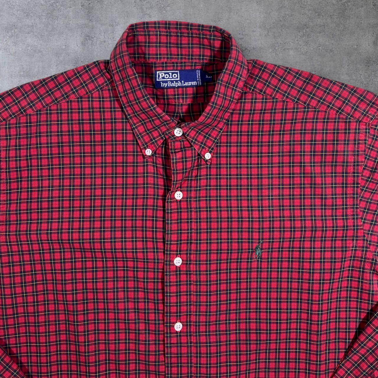 Vintage Polo Ralph Lauren Tartan Red Check Cotton Long Sleeve Button-Up Shirt