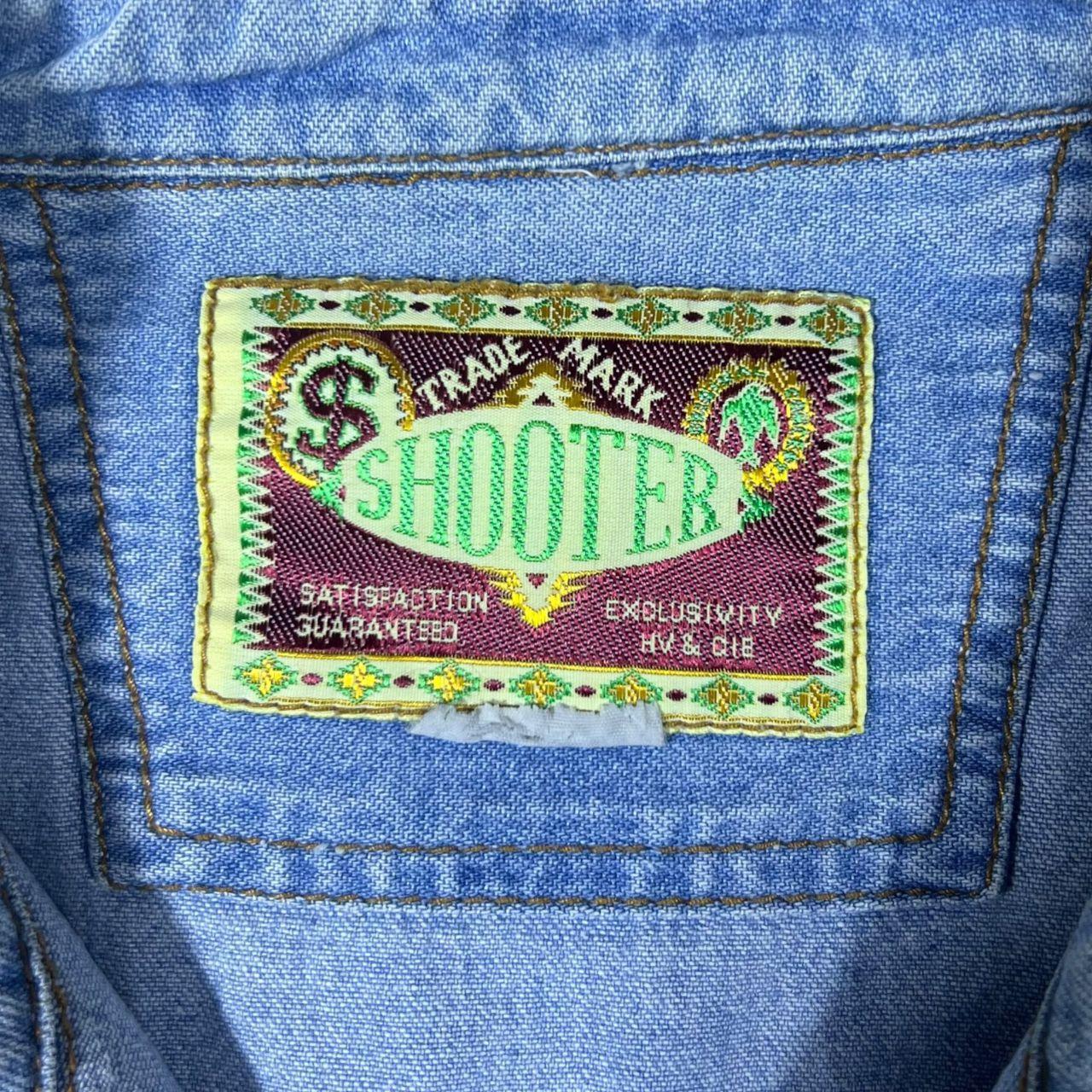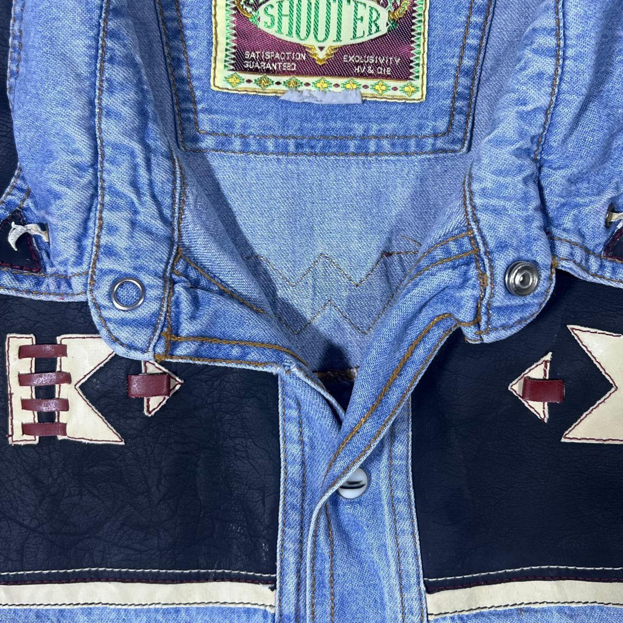Vintage Shooter Cowboy Western Aztec Panel Blue Denim Long Sleeve Popper Shirt