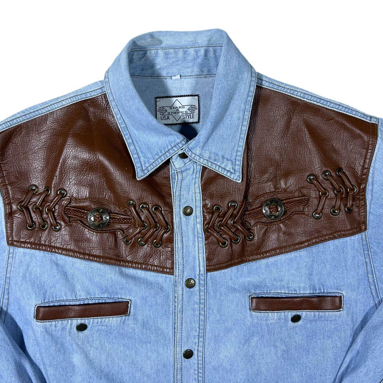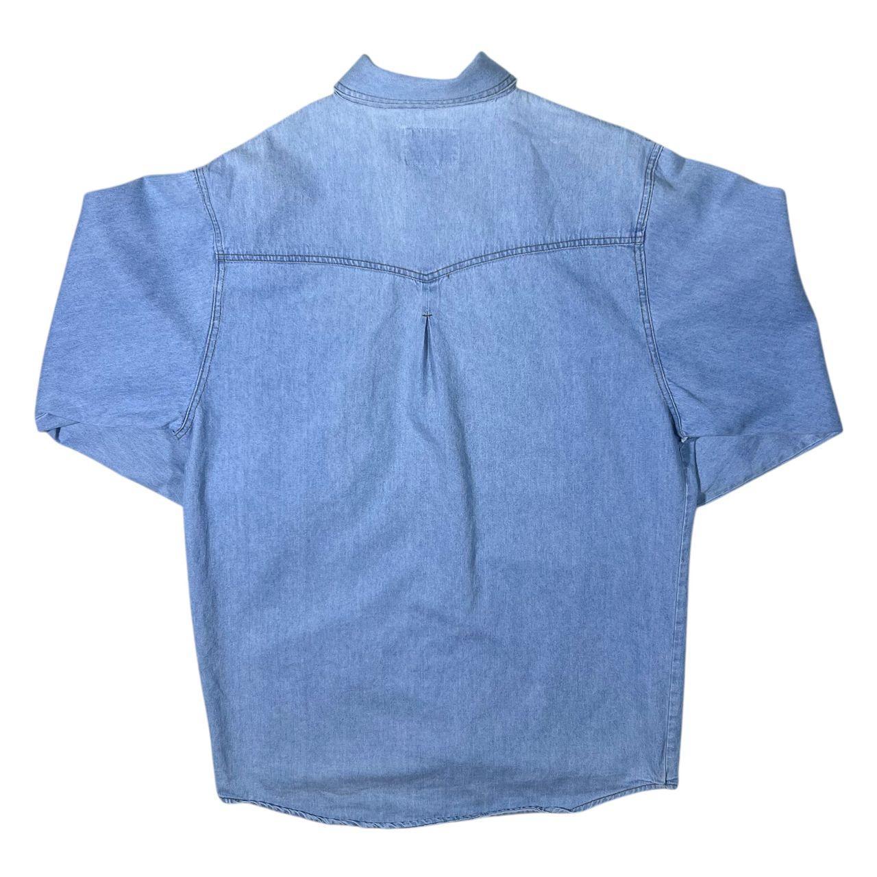 Vintage Stars & Stripes Cowboy Western Blue Denim Cotton Popper Long Sleeve Shirt