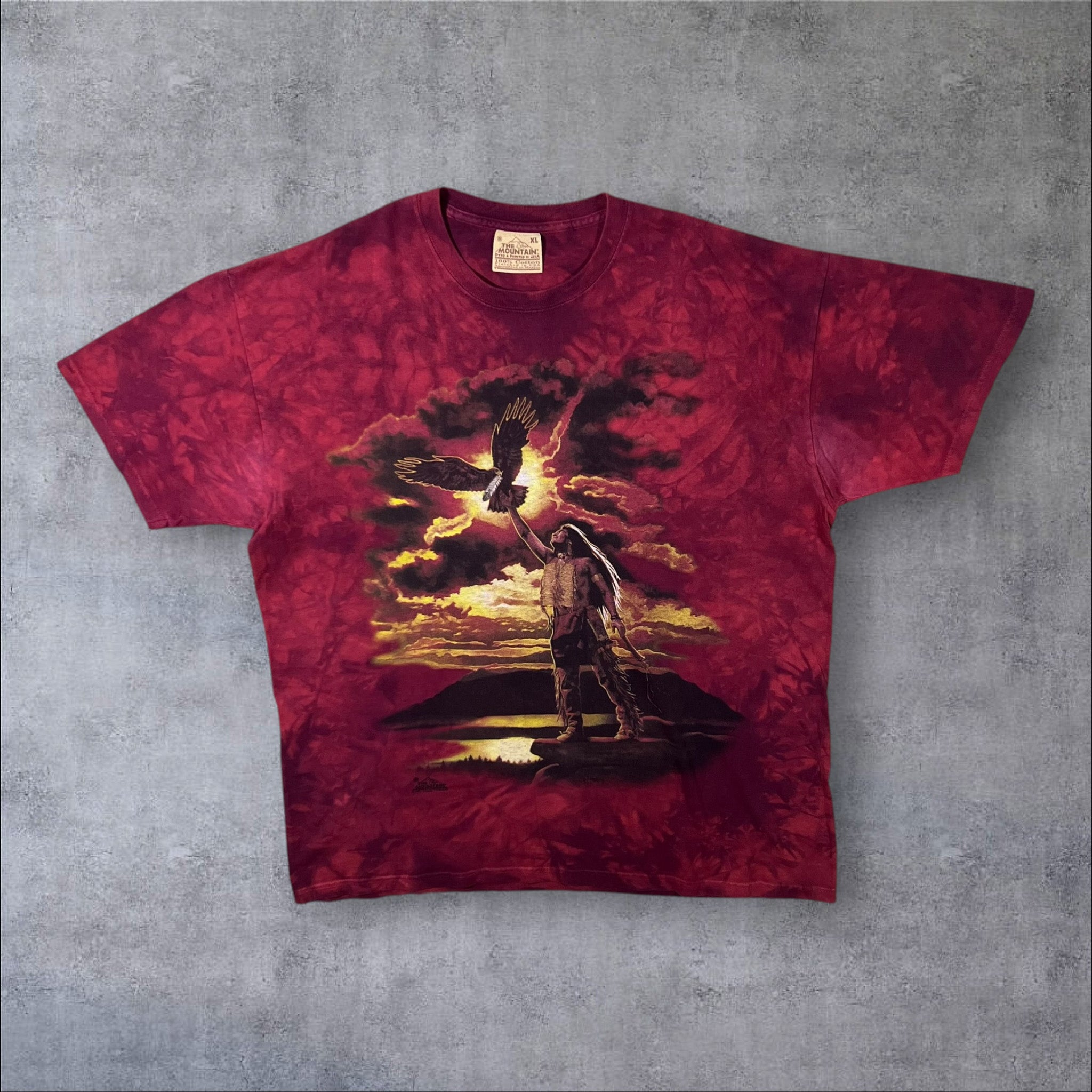 Vintage The Mountain (1997) Native American Graphic Red Tie Dye Cotton T-Shirt