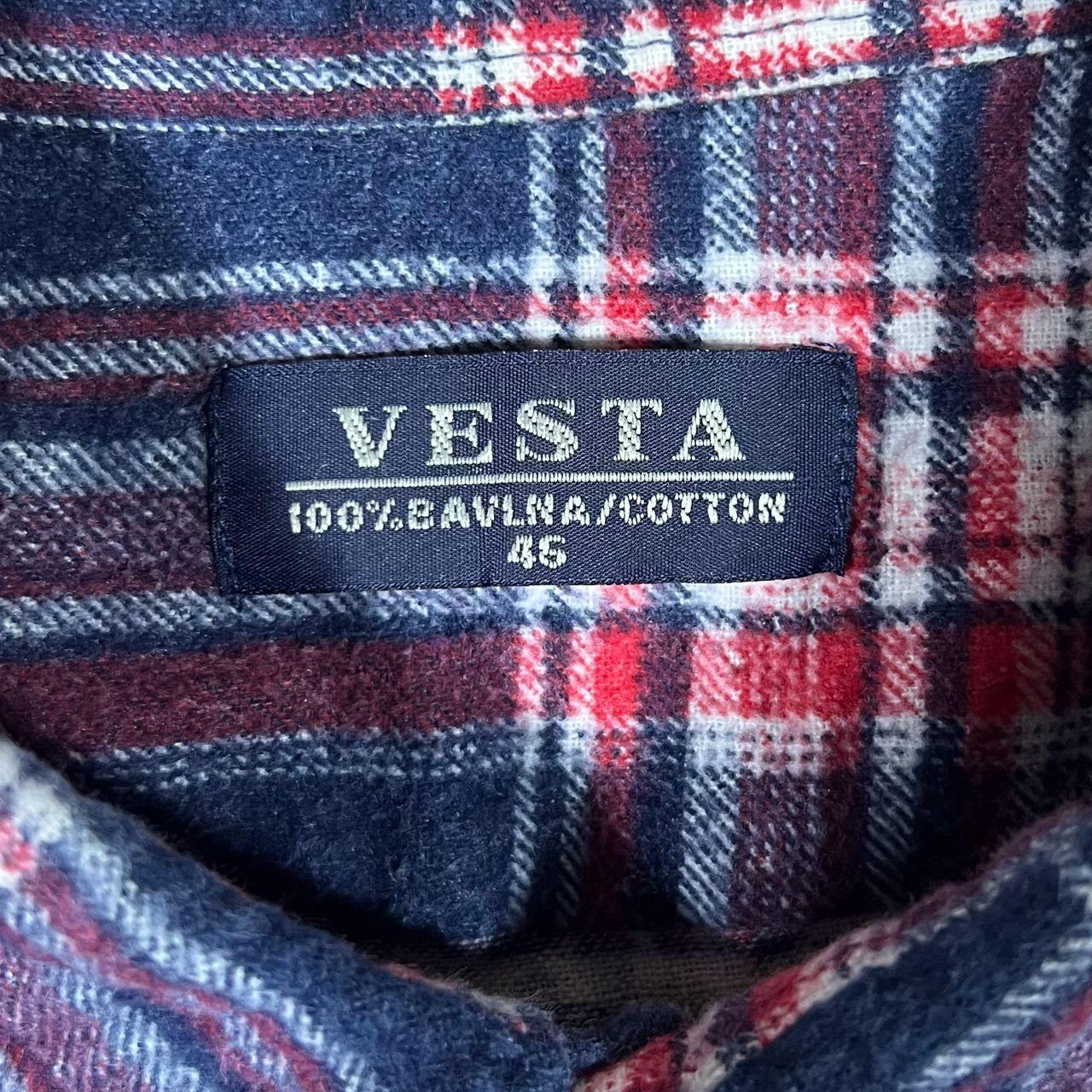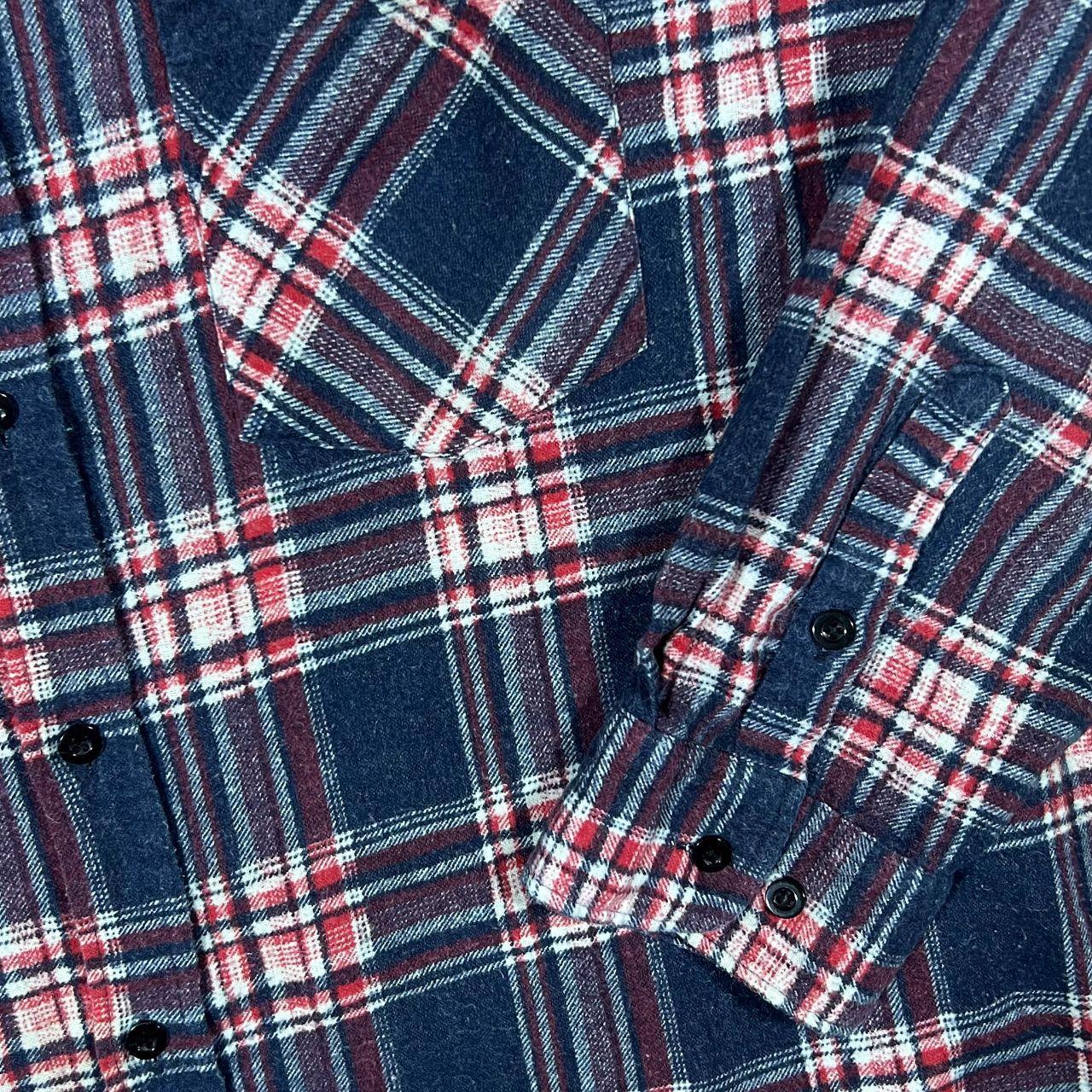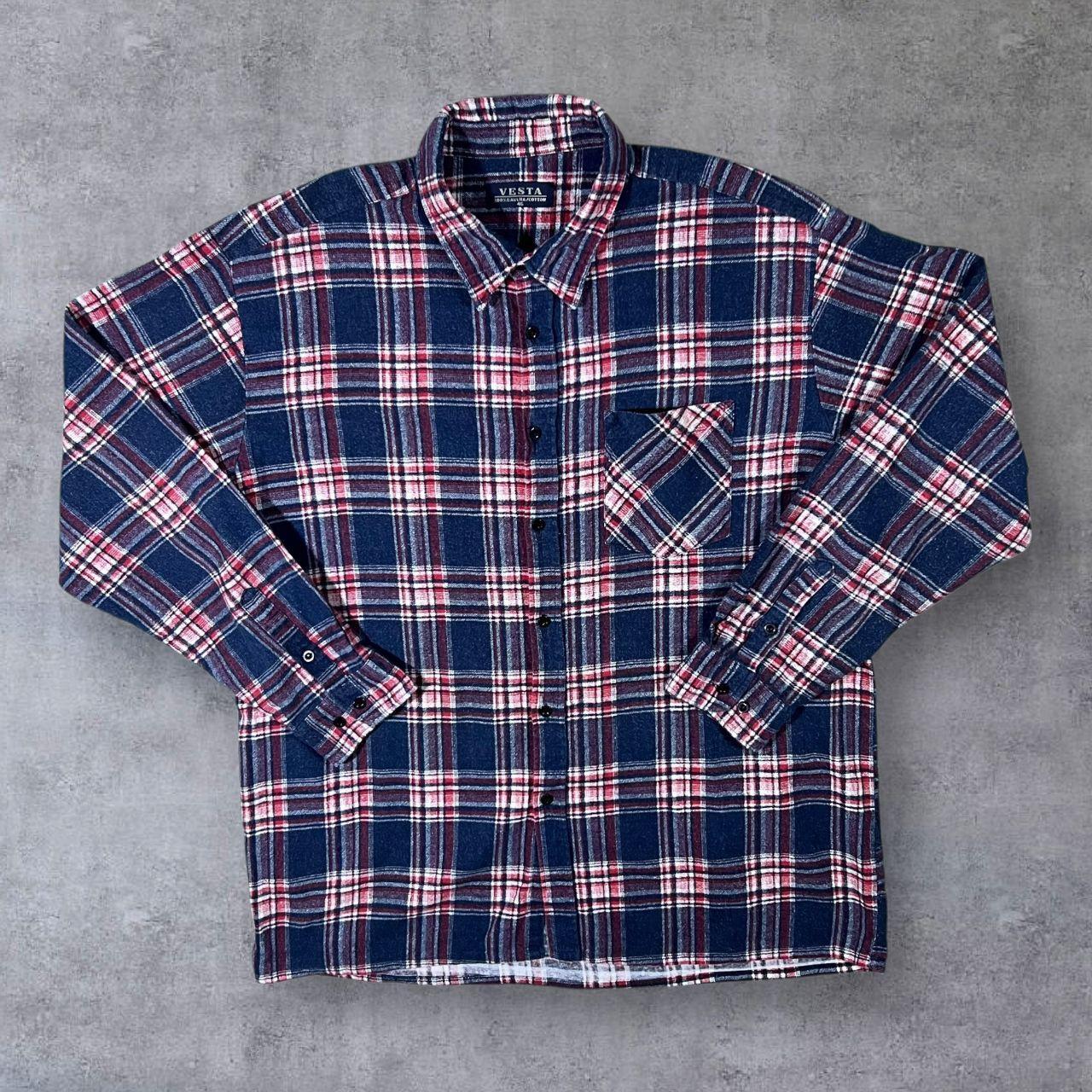Vintage Vesta Grey Red White Plaid Check Long Sleeve Cotton Flannel Shirt