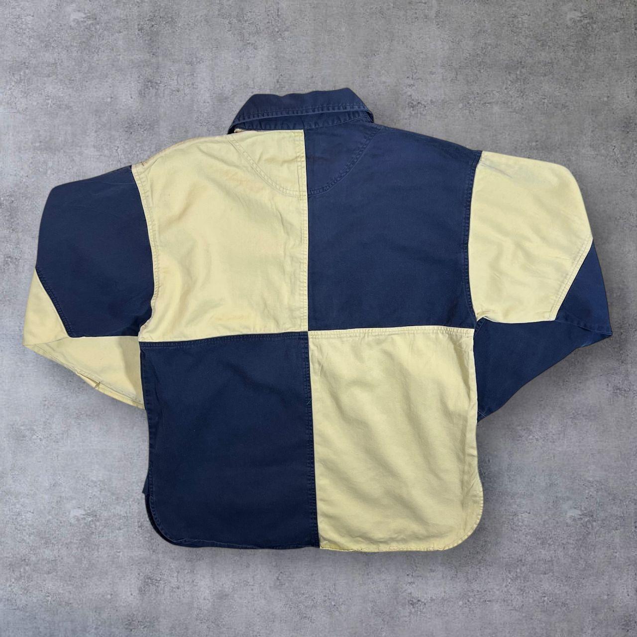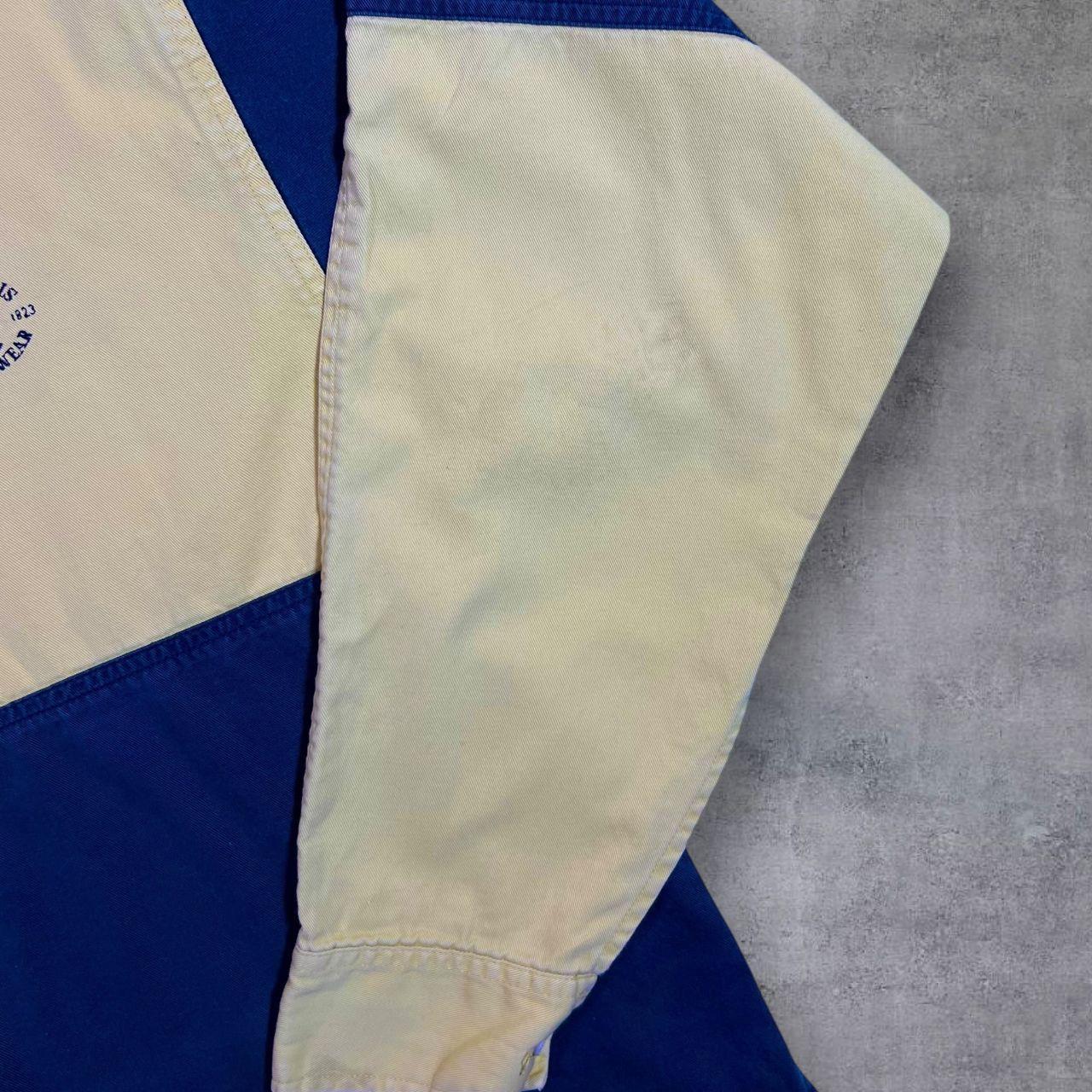 Vintage William Ellis Navy Blue Yellow Colour Block Long Sleeve Cotton Deck Shirt