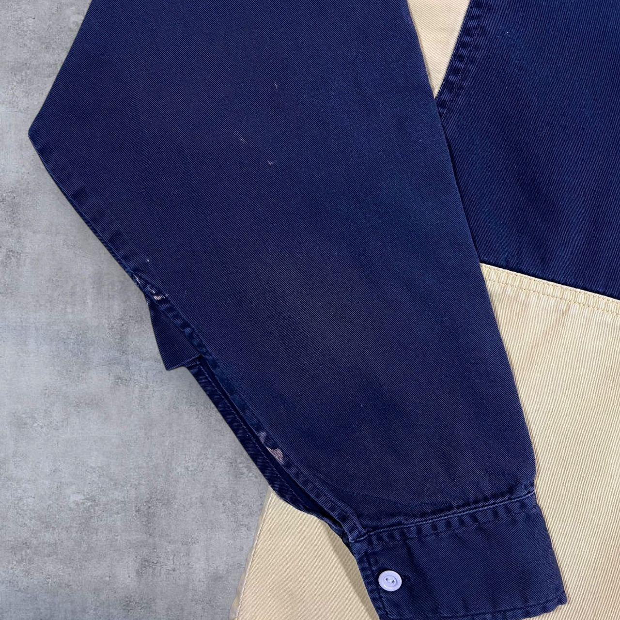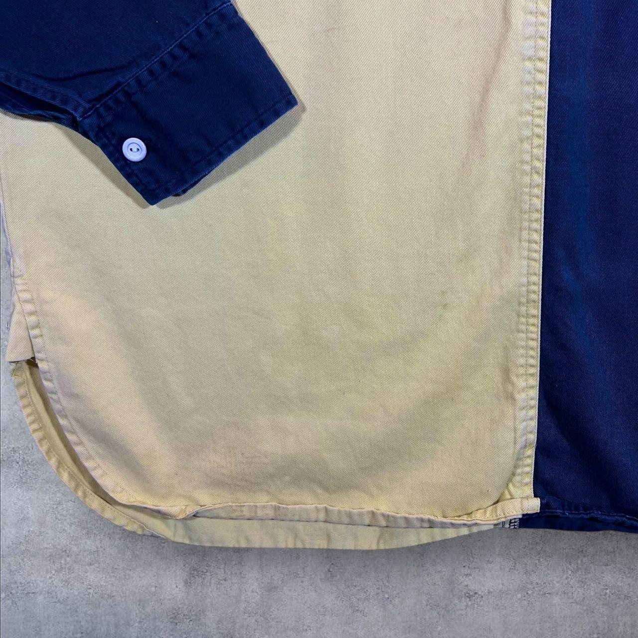 • Load image into Gallery viewer, Vintage William Ellis Navy Blue Yellow Colour Block Long Sleeve Cotton Deck Shirt